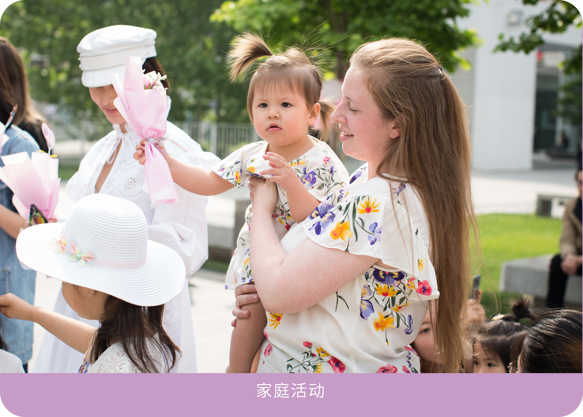 家育苑是一个充满快乐和团结的集体,我们会邀请家长们和我们一道庆祝节日、奉献爱心、服务社区。